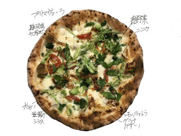 駿河湾産干し桜海老、釜揚げシラス、季節野菜、にんにく、香草 3月~5月の春限定ピッツァ 季節野菜をたっぷり使い、香ばしく焼いた桜海老との相性もピッタリ!!香草がほのかに香る、春の優しく爽やかなピッツァです。駿河湾産の桜えびの入荷が不安定なため、早期終売する場合があります。 南海放送 もぎたてテレビで紹介されたピッツァです。 テイクアウトはこちらから
